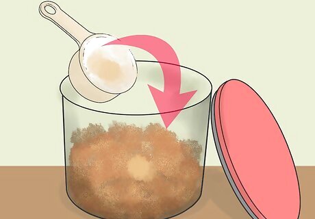 Place a piece of bread with the brown sugar. You can also soften brown sugar by storing it with a piece of fresh bread for a few days. The moisture from the bread softens the sugar. Just be sure you remember to toss out the bread before too long because it will dry out. You could also place a slice or two of apple in the container to keep the brown sugar soft.