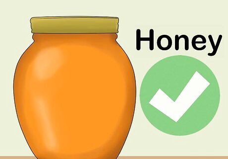 Use honey instead of brown sugar. If you don't have brown sugar or molasses on hand, consider using honey in place of the brown sugar in a recipe. To substitute honey, use 1/2 cup (170 g) to 3/4 cup (255 g) of honey for each 1 cup (200 g) of brown sugar called for and add 1/4 teaspoon of baking powder. You should also reduce the liquids in the recipe by 20% and turn down the oven temperature by 25 degrees. Avoid substituting honey in recipes that need you to cream butter with the brown sugar. Instead, use honey in soft-textured cake, ice cream, or pudding recipes.