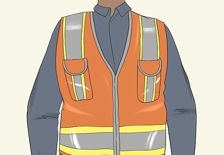 Wear a high visibility vest over your uniform or clothing. To meet U.S. Air Force regulations, for example, the vest must be “fluorescent international orange” in color. In reduced visibility operations, you may also be required to wear a vest with reflective material on it.