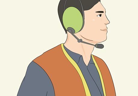 Bring along your provided communication tool. You might be given a headset, for instance, or a handheld radio. Use your communication tool to keep in touch with the flight line supervisor and, in some cases, the pilots in the jets you’re directing. Even if you do have radio communications with the pilots, it’s still essential that you use your marshalling hand signals to direct the aircraft under your care.