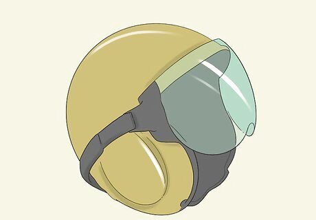 Protect your eyes and ears with proper safety equipment. Under some jurisdictions, you may be required to wear a helmet with a safety visor and hearing protection built in. Alternatively, it is vital that you wear safety goggles and adequate hearing protection in the form of ear plugs, ear muffs, or a headset. Jet engines can be loud enough to cause immediate hearing impairment, and they kick up small debris that can easily injure unprotected eyes. Make sure the safety gear you use meets the standards for your jurisdiction. For instance, you may be required to wear ANSI-approved hearing and eye protection in the U.S.