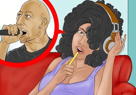 Be clear, articulate, and loud. It'll be hard to get into your music if you're mush mouthed, too quiet, or muddy in the mix. Rap shouldn't sound like one of the adults from old Peanuts cartoons. Put your vocals up front and make sure it's loud enough to be heard from all corners of the room. If you have trouble keeping your voice up while you perform, practice reading magazines and books out loud to get your voice naturally into a louder register. It might annoy your roommates, but it'll be worth it to amp up your performance to where it needs to be.