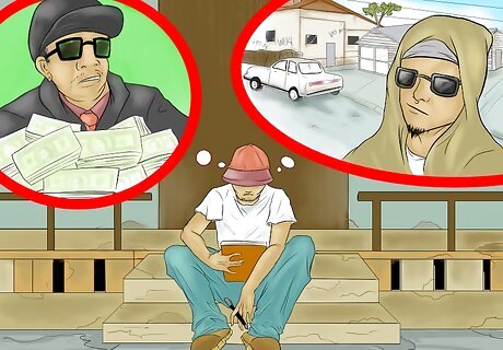 Get real. If you're a teenager from the suburbs, it's probably not the best idea to rap about the global cocaine trafficking empire you run. That's not to say you can't stretch the truth some, but it's important to seem real on some level. People have to believe that you're saying things that come from the heart, things that you can stand behind. Even rappers like Riff-Raff and Die Antwoord, who are often questioned for being some kind of "joke," are serious hustlers who take their craft and their music seriously, using social media and preconceptions about what hip-hop looks like to their advantage. And they can spit. Music should come first of course, but realness should influence your look to. Cultivate a fresh look that people will gravitate toward, one that represents your music visually. Look cool.