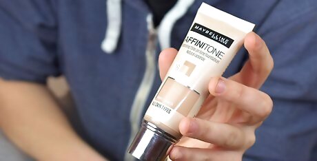 Choose a liquid foundation color that matches your skin tone. Pick out a foundation from your local beauty supply store, drugstore, or big box store. To choose the perfect shade for your skin tone, spread a small dot of the foundation on your jawline and see if it matches. It’s best to use natural light when checking the color because this gives you the best idea as to whether it matches or not. If you don’t find the perfect shade, try mixing two of them together to create your own.