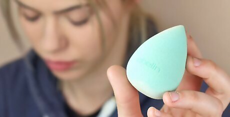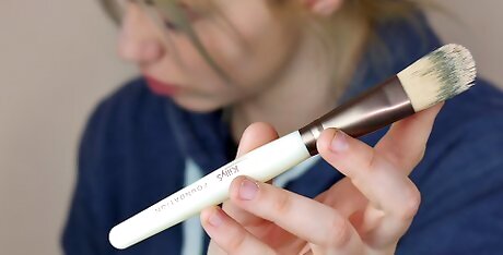 Use a makeup sponge for a natural, fresh look. Makeup sponges, also known as beauty blenders, are a popular option for applying foundation because they create a very smooth look by blurring any harsh lines. Makeup sponges work best when they’re slightly damp and are used by dabbing the makeup onto your face gently and evenly. Makeup sponges are great for making sure your makeup doesn't look caked onto your face.