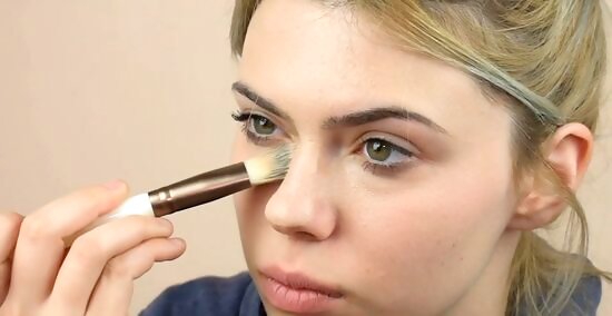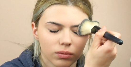Spread it using downward motions starting in the center of your face. Dab the makeup on using the beauty blender or use light, downwards brush strokes if you’re using a makeup brush. Begin at your nose and forehead as these tend to be the areas that need the most coverage and work your way to your cheeks and chin. Dip your brush or sponge back onto the back of your hand to get more foundation, if needed.