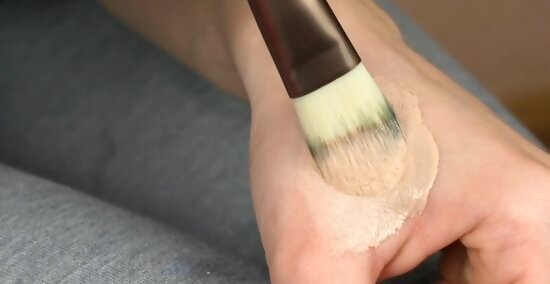 Mix them together thoroughly using the end of a makeup brush. Swirl the primer and foundation around on the back of your hand in small circles. Mix them together until you’ve created a foundation that’s all the same color and consistency. If you’d rather use your finger to mix the primer and foundation together, this is okay too.