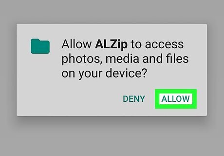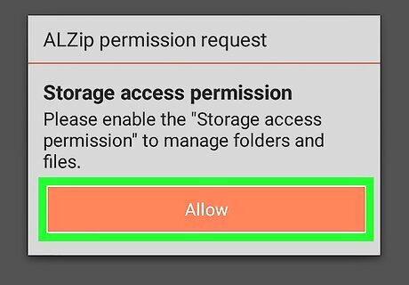 Tap Allow in the pop-up. This will prompt you to allow the app access to your files. You will only have to do this once after installing the app. Once you give ALZip access to your files, you'll always be able to directly view, navigate, open, and edit your files in the app.