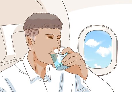 Drink plenty of water to stay hydrated during travel. The air in the cabin of an airplane causes you to become more dehydrated than normal, and dehydration will make your jet lag symptoms worse. Drink lots of water before, during, and after your flight to minimize the effects of jet lag upon landing. Try to avoid alcohol and caffeine for at least 3 hours before traveling and while traveling. Both alcohol and caffeine will interfere with your sleep. Not only that, but if you end up with a hangover your jet lag symptoms will be even worse!