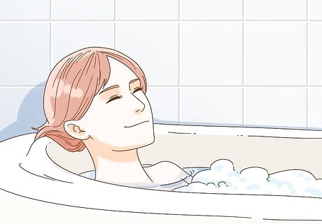 Take a hot bath before you go to sleep to relax. A hot bath will relax your muscles and relieve the stress from travel. It will sometimes also help you sleep because of the drop in body temperature when you get out of the bath. If your hotel room doesn't have a bath, try a hot shower instead.