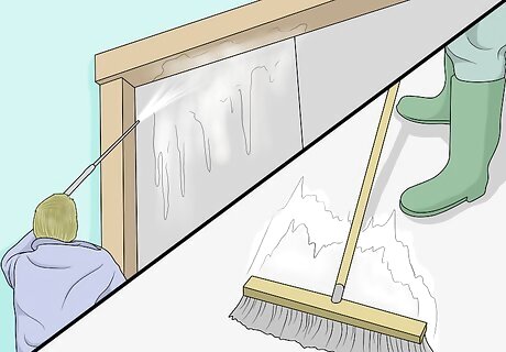 Ventilate the garage. The overhead garage door should be open, at least at the cleaning phase. If it is too windy, opening it up 6-8 inches (15.24 - 20.32 cm)should be sufficient to ventilate, but keep the outside from coming in and sticking to your new floor.