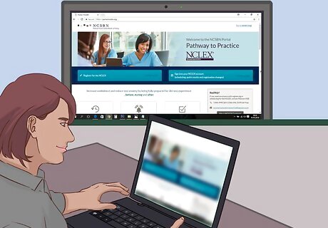 Register and pay for the NCLEX exam. If you are an eligible NCLEX candidate, you can register online for the exam using your nursing program code. Complete an online registration through Pearson Vue and indicate if you want to receive correspondences by email or regular U.S. mail. Pay the $200 NCLEX registration fee by credit, debit, or prepaid card. File an application with your state board of nursing to determine if you are an eligible candidate. To find your state board, visit https://www.allnursingschools.com/articles/nursing-state-boards. Register for the exam at at http://www.pearsonvue.com/nclex/ncsbn/.