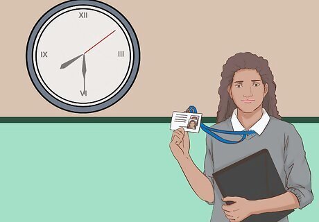 Bring photo ID and check into the exam 30 minutes early. If you arrive to your NCLEX exam 30 or more minutes late, you will be forced to forfeit, re-register to take the exam at another time, and pay a second exam fee. To make sure that you are on time, aim to arrive to your exam location 30 minutes early. Bring a valid, signed, government-issued piece of photo ID to sign in before your exam. You can present a driver's license, passport, state ID card, military ID, or permanent residence card.