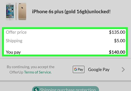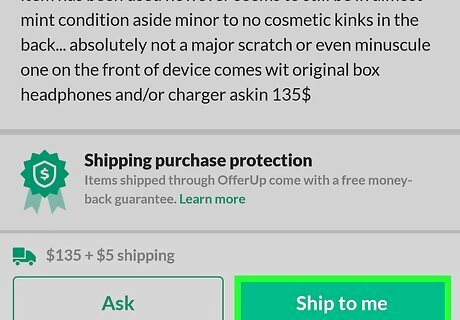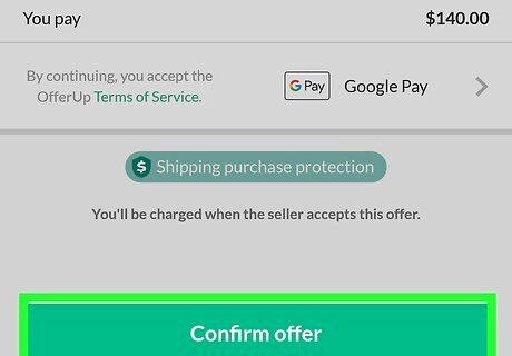 Tap Confirm offer. This sends your offer to the seller. If the offer is accepted, your the total will be deducted from your card and the item will be shipped via the United State Postal Service. Once the item arrives, inspect it to make sure it’s as described. If there’s something wrong, contact OfferUp within 3 days of arrival to report the issue. To do so, go to this page and tap Contact Us.