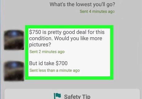 Agree on a price. If the seller accepts your offer, they’ll send you a message letting you know. If they offer a different price, you can either continue negotiating, or tell the seller you’ll buy the item at the suggested price.