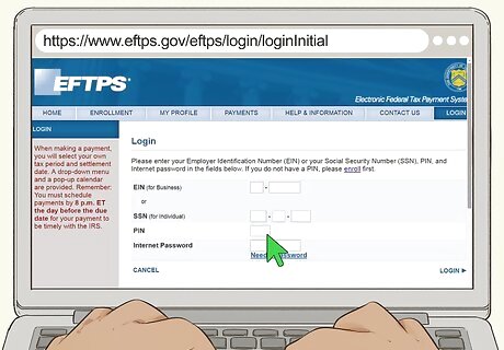 Enter payment information to pay or schedule future payments. From the home page, select "Make a Payment." You'll need to enter your log-in information again. This time, you'll enter your EIN or SSN and the password you just created. Follow the instructions on the step-by-step screens to set your payment information. You can schedule payments up to 365 days in advance.
