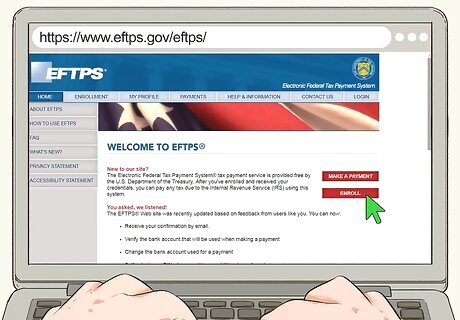 Go to https://www.eftps.gov/eftps/ to set up your account. To set up your account, you'll need either your Employer Identification Number (EIN) or Social Security Number (SSN) and your bank account and routing number. You need to sign up using the name and address that appear on your IRS tax documents. On the website, select "Enroll," then indicate whether you're enrolling as an individual or a business. If you have an EIN, you're registering as a business. If you're using your SSN, you're enrolling as an individual, even if you're self-employed.Tip: If you prefer to enroll using a paper form, call the EFTPS customer service line at 1-800-555-4477 and an enrollment form will be mailed to you.