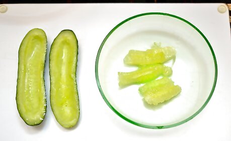 Remove the seeds and discard them before removing the seeds from all other quarters of the cucumber.