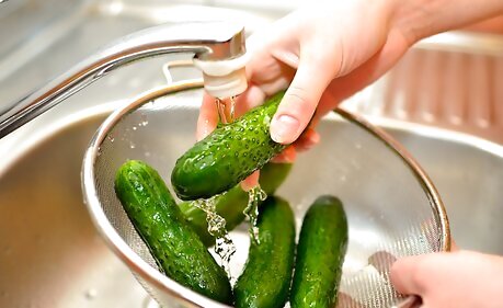 Wash the cucumber under a stream of cool water. Make sure to wash all the cucumbers you have!