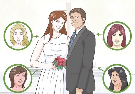 Ask your partner how many people they want on their side. It is important to discuss this with your partner; otherwise, you might end up with 6 people on your side and only 1 person on your fiance’s side. If you want dramatically different numbers of people, try to compromise or talk it over until you reach a solution that works for both of you. If you need to make up numbers in your bridal party, consider asking extended family members, such as cousins to be bridesmaids or groomsmen.