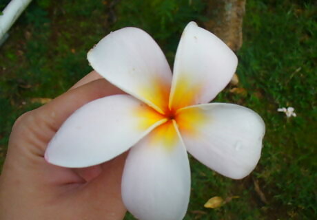 Be careful of the fully blossomed flowers. Plumerias that are fully blossomed or have petals that "stretch" out may be more fragile than others. Especially the white ones, the petal may part away from the stem while making the lei. They're also fragile where the petal may come off by itself if the flower is not properly taken care of.