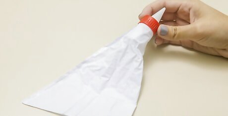 Buy a piping bag or make your own. Piping bags, also called pastry bags, are canvas or plastic cones with a hole at the tip to squeeze the frosting out of. If you don't own one, you can easily make your own following the instructions in this linked article. You can use a rectangular plastic bag (such as a ziploc bag) and cut a hole in one corner, or cut out a large, long triangle of parchment paper and wrap it in a circle to make a cone. If you use parchment paper, make sure to fold the corners down or tape the outside layers together to prevent the bag from falling apart.