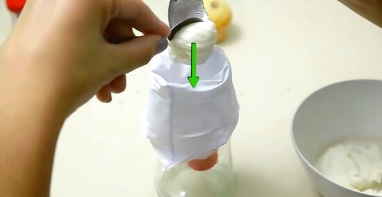 Spoon the frosting into the piping bag. Frosting is the right thick consistency for a pastry bag, whereas icing is thin and liquid based, and might run through the nozzle before you squeeze. Either way, filling the bag is likely to create mess, so go slowly. If the spoon is making a mess or the frosting keeps sticking to it, try using a spatula instead.