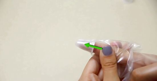 If you are only using one tip, place it directly into the bag. Point the decorating tip nozzle downward and push it to the narrow end of the bag. The nozzle should poke through the hole in the end but be held in place by the walls of the bag. Cut a larger hole if necessary, but don't worry if it's not a perfect fit; the icing should hold the tip in place.