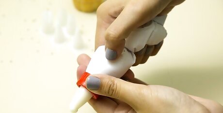 Squeeze most of the frosting to the top of the bag. Make sure the top of your bag is tied or twisted as described in the last section. Push most of the frosting up to the top of the bag until you're left holding a small handful of frosting at the base of the bag. Twist the bag above this amount so the rest of the frosting doesn't fall through. Now you only need to squeeze a much smaller, more manageable amount of frosting. You'll be able to decorate for longer without your arms tiring, and you'll have more control over your decoration. Warning: Do not attempt this with a parchment paper bag. It will fall apart or break. If you find the parchment paper bag tiring to use, try filling it only half full of frosting or less. Untwist the bag and push additional frosting to the lower area whenever you start running out of frosting. You should have enough frosting in that handful to decorate at least one cupcake.