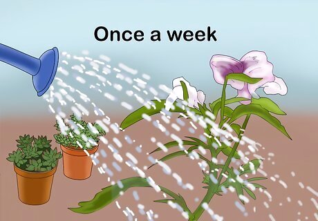 Water regularly. For the first year, the root system will be poorly set in the soil. This means that you will need to water your plant regularly to allow the root system to develop. Even though your plants are low water, they will require regular watering until their roots are well developed.