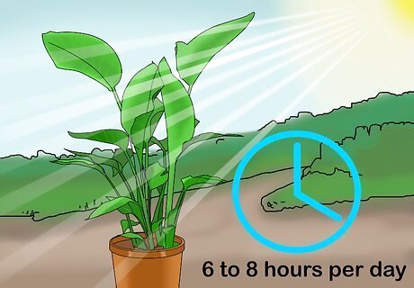 Plant in a place with 6-8 hours of sunlight per day. Before deciding where to plant your plants, make sure that there is adequate sunlight. You can measure this by simply noticing when the sun hits the garden area and when the area is taken over by shade. If there are at least 6-8 hours in between, the garden should do fine. Unless the plant(s) you have chosen specifically calls for less, the garden area should receive at least 6-8 hours of direct sunlight each day.