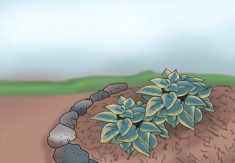 Mulch the plant bed. Spread mulch, like rocks, wood chips, or bark, over the plant bed to keep the soil cool. This also helps to prevent water from evaporating out of the soil. You should use mulch layer to prevent weeds from growing in your garden and keep the soil from being washed away.