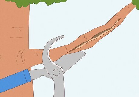 Remove damaged or diseased branches every few months. No pruning is needed at the time of planting, but be sure to check on the tree every 2-3 months once its in the ground. Use sharp pruning shears to remove any damaged or diseased areas. Always leave the lower limbs intact, if possible. It's important to limit pruning for the first 2 years until the tree is established so you don't stunt the growth. Once the tree is established, prune the tree according to the needs of the species. Be sure to research thoroughly so you know when and how much to prune! Periodically, you can add an all-purpose fertilizer depending on the soil.