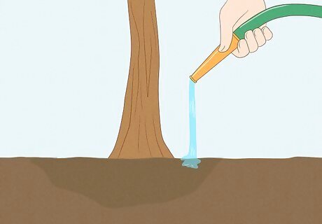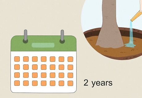 Keep the soil consistently moist for the first 2 years. Watering your tree properly helps the roots get established and is crucial to ensure the tree’s survival. How often you water depends on your climate, so monitor the soil and water as often as needed (even in the winter). If you can't monitor the soil moisture closely, consider installing a drip irrigation system. The system discharges small quantities of water on a regular basis directly to the root zone to keep the tree hydrated. If the ground freezes in winter, you don't need to water during that time. Give enough water to the plant to stay healthy but not too much water that it's always soggy.