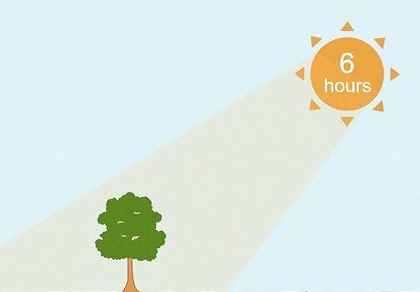 Make sure your chosen location gets at least 6 hours of sunlight daily. Light needs vary depending on the tree species, so you’ll want to check your specs. That said, most trees require full sun to thrive. At a bare minimum, full sun amounts to 6 hours of uninterrupted sunlight per day.