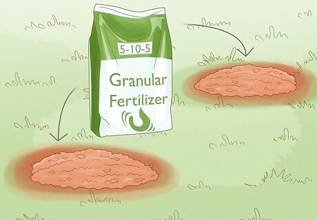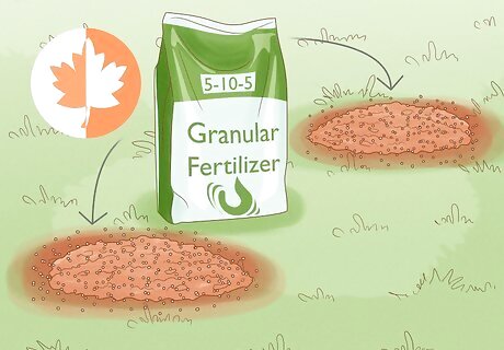 Fertilize bulbs once a year in the fall. Pour a store-bought liquid fertilizer over the bulbs. Choose a fertilizer that is high in potassium and phosphorus, since these nutrients are most important in helping your bulbs grow healthy. Follow the directions on the fertilizer to ensure you don’t use too much. Use a balanced fertilizer rated 5-10-5 or 5-10-10. Apply fertilizer sparingly, since it can also cause the grass to overgrow and crowd out the bulbs. Turf fertilizers are high in nitrogen, so if you apply it to your grass, also apply a bulb fertilizer. You can apply both over the bulbs at the same time.