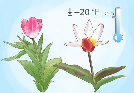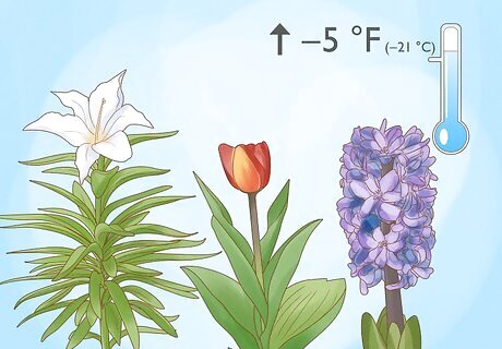 Pick bulbs that can last the winter if you live in a cold climate. In areas that experience long, cold winters with temperatures under −20 °F (−29 °C), plant hardier bulbs. Some tulip types, such as Greigii or Darwin bulbs, can grow well. Daffodils and crocuses can also give your yard some flair in spring. Small, versatile bulbs, such as snowdrops, winter aconites, glories of the snow, and grape hyacinths, are good choices for cold climates. Since you are planting the bulbs in grass, you cannot use mulch to protect them in winter, so only choose bulbs suitable for harsh winters.