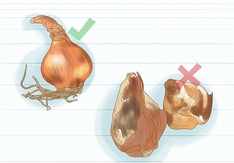 Buy firm, undamaged bulbs. Feel the bulbs before buying or planting them. Healthy bulbs feel firm to the touch. Any bulbs that have soft spots or show signs of rot are less likely to survive planting. These signs are often seen in older bulbs, which should be avoided. Damaged bulbs may not survive for very long in grassy areas. They often cannot compete with grass for water and nutrients. For the best results, plant your bulbs soon after you purchase them in the fall so they don’t begin to turn soft or rot.