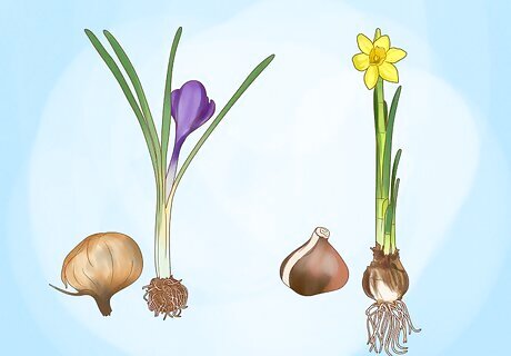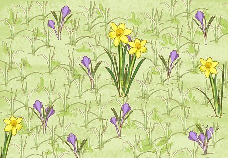 Select daffodils and crocuses to grow bulbs easily. Daffodils and crocuses are the most popular bulb choices for grassy areas. A few other bulbs, such as tulips, anemone, and grape hyacinths, are also beginner-friendly. These bulbs require little maintenance and naturalize easily in lawns. Bulb size isn’t important. Smaller bulbs like crocuses can grow as well as larger bulbs like daffodils.