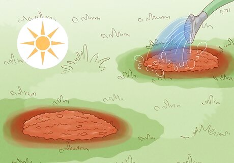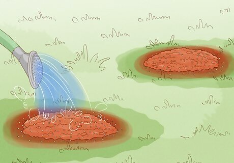 Water the planting area until the soil is moist. Water the area well so the moisture gets past the grass blades and into the soil. You can test the soil by kneeling down and touching it. It should feel moist, not soggy. Pick up some of the soil and roll it between your fingers. Moistened soil rolls into a ball instead of falling apart.