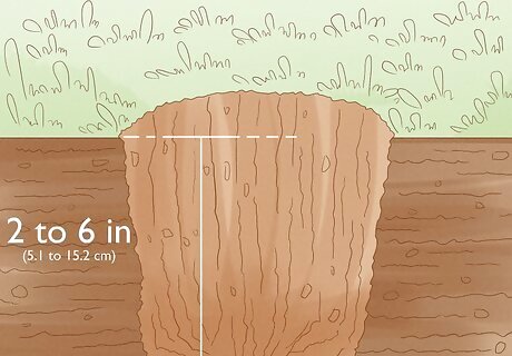 Deepen holes until they are between 2 to 6 in (5.1 to 15.2 cm) deep. The hole depth you need depends on what bulbs you plant. You can figure out the recommended planting depth by reading the information on the bulb packet or by searching online. A good rule of thumb is that the hole needs to be 2 to 3 times as deep as the bulb’s height. The largest bulbs, such as daffodils, need holes around 6 in (15 cm) deep. The smallest bulbs, such as crocuses, survive well in holes 2 in (5.1 cm) deep.