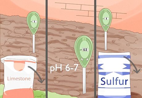 Test the soil to see if it has a pH between 6 and 7. Bulbs grow best in soil that is slightly acidic. You can purchase a testing kit at a home improvement store. Use the kit to test a soil sample, then adjust the soil as needed by tilling amendments 8 in (20 cm) deep into the soil. Grass also grows well in slightly acidic soil, so your bulbs should be fine in any spots where grass sprouts. To raise the pH, add limestone to the soil. To lower the pH, mix in sulfur or aluminum sulfate.