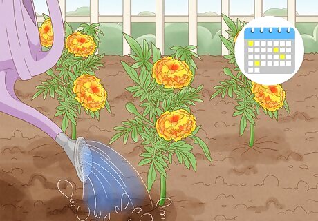 Water the marigolds occasionally. Marigolds do not generally require a lot of water, so water every few days. You want to let the soil partially dry out between watering. Too much dampness in the soil can over stimulate marigolds and isn’t good for the plant. Water at the roots, and avoid getting the blooms, leaves and stems wet.
