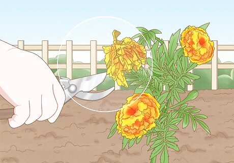 Snip off dead blossoms. If you notice that your marigold plant has dead blooms or branches, snip them off with gardening shears. This will help the plant to bloom more freely, and will promote healthy growth for the rest of the plant.