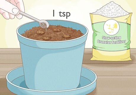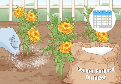 Mix in a slow-acting granular fertilizer. Use about a teaspoon per plant of slow-acting granular fertilizer. This will give your marigolds the nutrients that they need to grow, and are active over a long period of time, about 8-12 weeks.