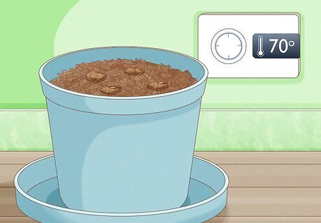 Keep the temperature around 70 degrees. 70 degrees is a good temperature to aim for in your home. Check your thermostat and make sure that your marigolds are being kept around this temperature. If needed, you can buy a heating pad to put under the pot to keep it at this temperature. Also make sure that you start growing your marigolds away from direct light until germination.