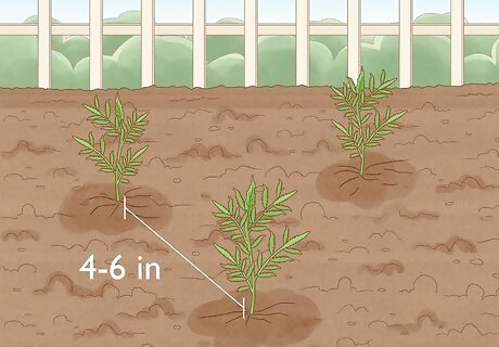 Space the marigolds 4–6 inches (10.2–15.2 cm) apart. If you are planting more than one marigold, make sure that they are spaced at least 4–6 inches (10.2–15.2 cm) apart. If you are planting a larger marigold variety, space about a foot apart.