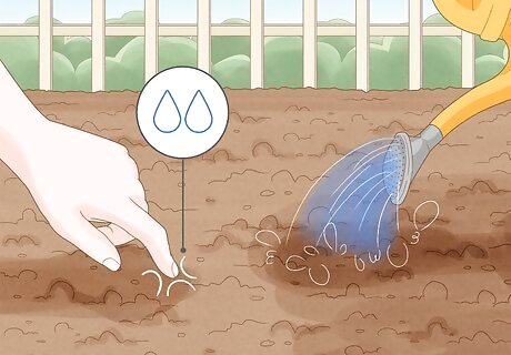 Water the seeds regularly. Touch the soil with your fingertips to determine whether or not it needs watering. If it’s dry, gently and carefully sprinkle the seeds with water. Continue keeping the soil moist until the seeds sprout.
