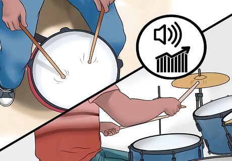 Use dynamics, or changing volumes, to create tension. Remember, your audience will be entertained if you take them on a journey. Creating soft, quiet moments will make the intense moments much more powerful, as they will be noticeably more forceful compared to the softer playing right before it. Remember that you can use dynamics on every single piece of the kit, from floor toms to crash cymbals. How smoothly can you ratchet up tension? Try playing a roll on a snare or cymbal, starting from almost silent and transitioning smoothly into the loudest you can play.