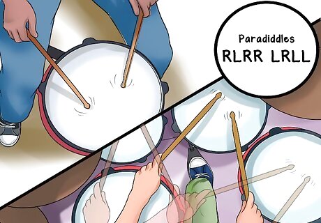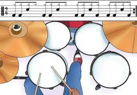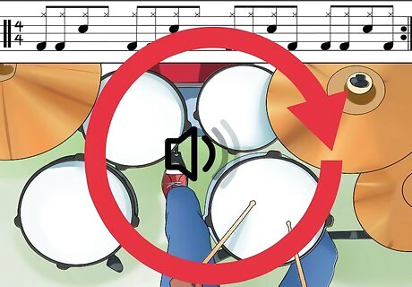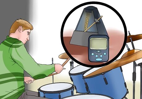 Continue practicing your rudiments, rolls, and rhythmic consistency to build technical skill. While a great solo is within the reach of most drummers, you won't improve if all you do is beat and bash on the drums each day. To become a better soloist, you need to spend 15-30 minutes every day on the basic, boring technical skills that make up any good drummer's arsenal. Think of it this way -- even the best-planned solo will fall flat if the notes themselves are sloppy, inconsistent, or off time. Search online for "rudiments," which are small drum licks that are meant to be repeated over and over again to build technical skills. Practice to a metronome every day, even when you're not playing solos. Remember that, on stage, you need to be the rest of the band's metronome, too.